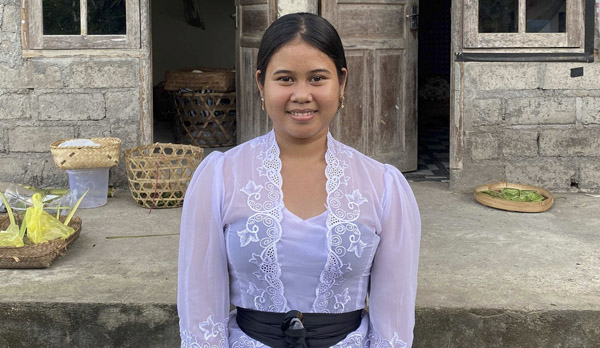 Ayu Seri’s father passed away from renal failure when Ayu was five years old. Ayu’s mother struggled to raise four children on her own by working as a laborer and making Balinese offerings to be sold in the market. Unfortunately, the most she can earn in a month is around US$80. Her labor job is seasonal, depending on the project. She usually works in a construction project or in the rice-field.