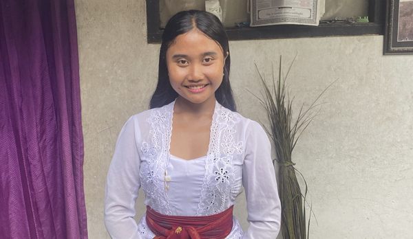 Ayu Seri’s father passed away from renal failure when Ayu was five years old. Ayu’s mother struggled to raise four children on her own by working as a laborer and making Balinese offerings to be sold in the market. Unfortunately, the most she can earn in a month is around US$80. Her labor job is seasonal, depending on the project. She usually works in a construction project or in the rice-field.